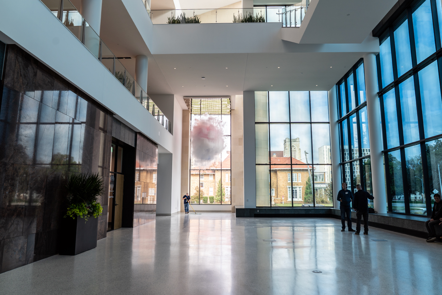 Suspended in the atrium of the State Docking Building, Kansas, Astra gathers overhead like a weightless cloud or distant nebula.