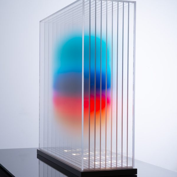 Aura is an exploration of the concept of volumetric colour. Suspended between materiality and immateriality, the work suggests a shifting horizon, an ephemeral threshold of colour. Here, three-dimensional colour bleeds into the surrounding space, free from edges, existing in a state of flux between object and atmosphere. Aura expands on the ideas of David Spriggs Stratachrome, where colour is not merely seen but experienced as a layered phenomenon, unfolding and shifting with perception.
